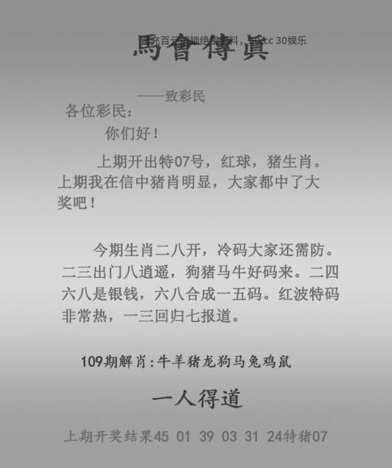 109期:吉祥单双【单数】开:猪07准